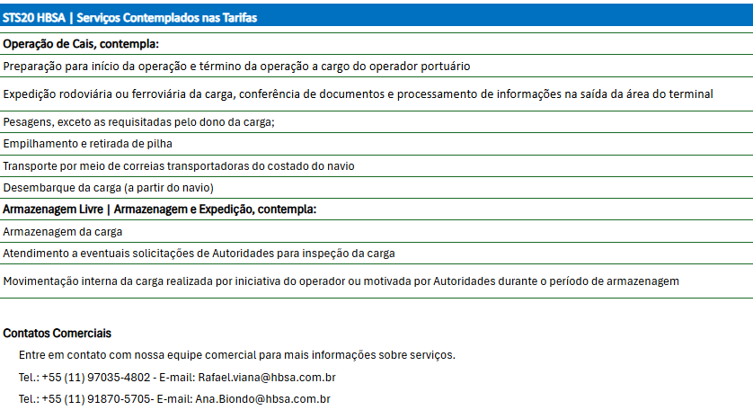 Nossa operação, tem capacidade de movimentação de até 2,5 milhões toneladas de cargas por ano.